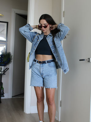 A neutral denim outfit with a pop up color brought in by accessories is an easy + comfortable fit perfect for a variety of occasions.